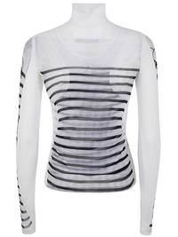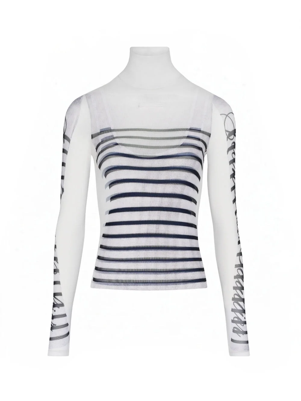 Jean Paul Gaultier Women Spandex And Mesh Longsleeve Top Printed "Feathers Mariniere"