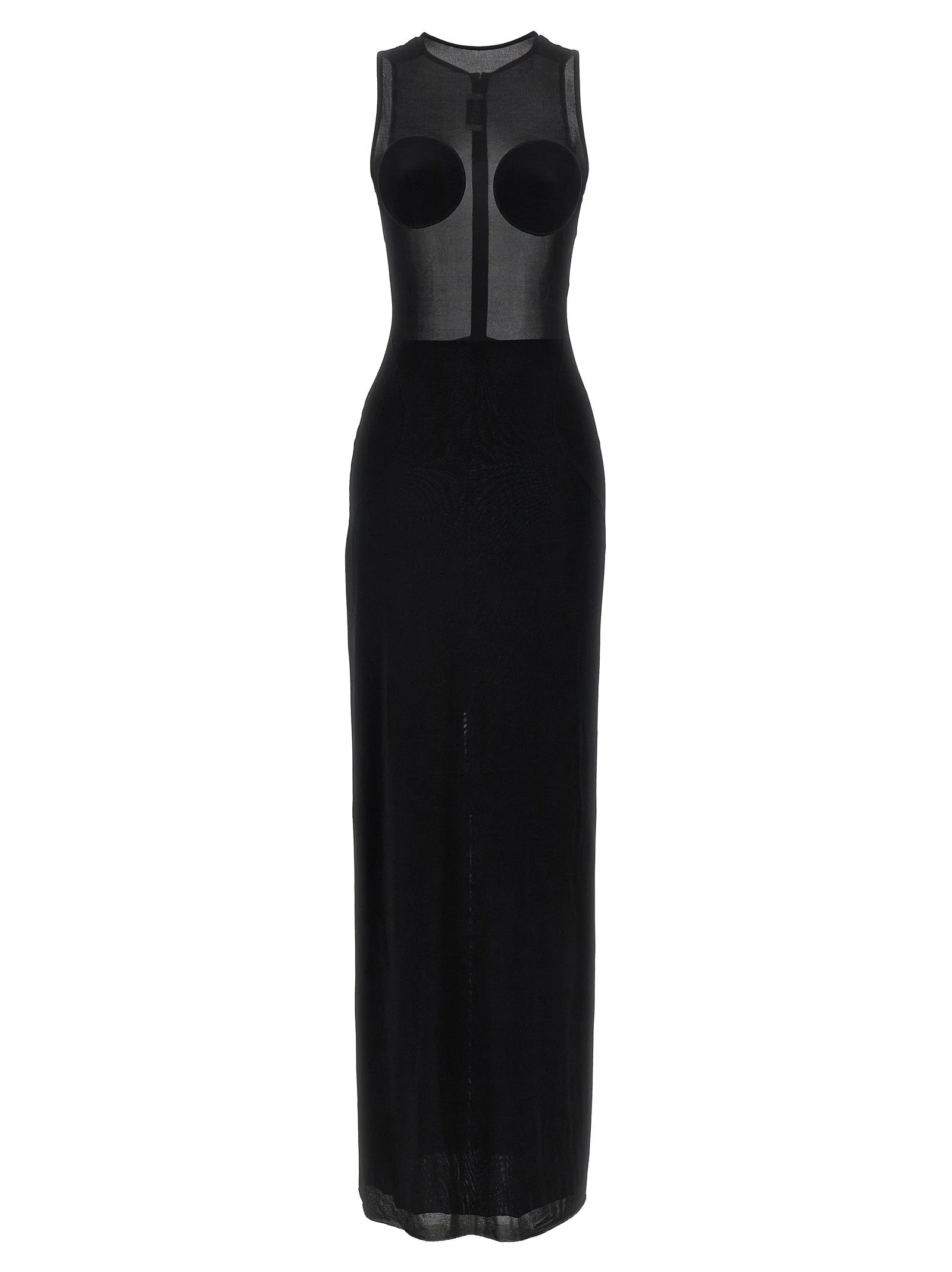 Long 'The Black Conical' tulle dress with semi-transparent upper part with conical detail on the breast, crew neck, zip closure and back split, underskirt. Slim fit 94% viscose 6% elastane SKU: 2534FRO372J08200 Our Products Are 100% Genuine. In All Cases We Stand By The Authenticity Of Every Product Sold On Our Site. All sales are final and we only accept returns for quality issue. Buyer is responsible for any import tax/duty if applicable.