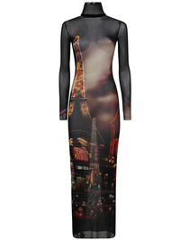 Jean Paul Gaultier Women Turtleneck Mesh Long Dress Printed "Pigalle"