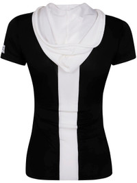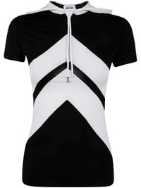 Jean Paul Gaultier Women Viscose Baby Tee Shirt With Inlaid Chevron, "Gaultier" Patch Detail And Hoo