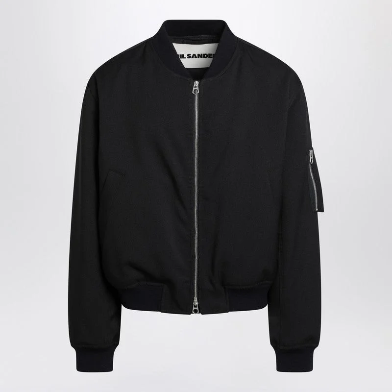 Dark blue bomber jacket from Jil Sander featuring a front zip fastening, two side welt pockets, long sleeves with a zipped patch pocket and ribbed cuffs and hem. Model wears size 48 IT Model measurements: Height: 185 cm Chest: 105 cm Waist: 85 cm Hips: 100 cm Size Type: IT Material: Polyester SKU: J22BN0241J70001/QJILSA402202 Our Products Are 100% Genuine. In All Cases We Stand By The Authenticity Of Every Product Sold On Our Site. All sales are final and we only accept returns for quality issue. Buyer is responsible for any import tax/duty if applicable.