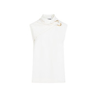 Jil Sander Draped Knitted Coconut Virgin Wool Tank Top. White virgin wool, turtle neck with draped effect and gold-tone metal ring detail, sleeveless, straight hem. Wool | 100%VIRGIN WOOL Size Type: DE SKU: J01NC0136J14699White Our Products Are 100% Genuine. In All Cases We Stand By The Authenticity Of Every Product Sold On Our Site. All sales are final and we only accept returns for quality issue. Buyer is responsible for any import tax/duty if applicable.