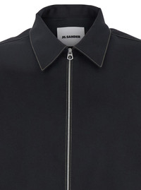 Jil Sander Men Black Zip-Up Shirt With Contrasting Stitching In Tech Fabric Man