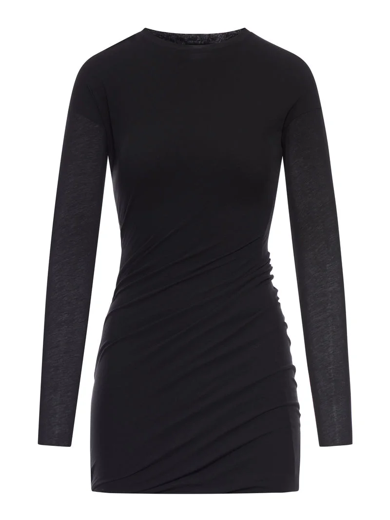 - Round neck - Long, slightly sheer sleeves - Side drape with gathers - Straight hem - Slim fit - 100% cotton - Color: Black Made in Italy Composition: Cotton 100% Cotton Color code: 001 BLACK J03CT0597J20342 SKU: J03CT0597J20342001BLACK Our Products Are 100% Genuine. In All Cases We Stand By The Authenticity Of Every Product Sold On Our Site. All sales are final and we only accept returns for quality issue. Buyer is responsible for any import tax/duty if applicable.