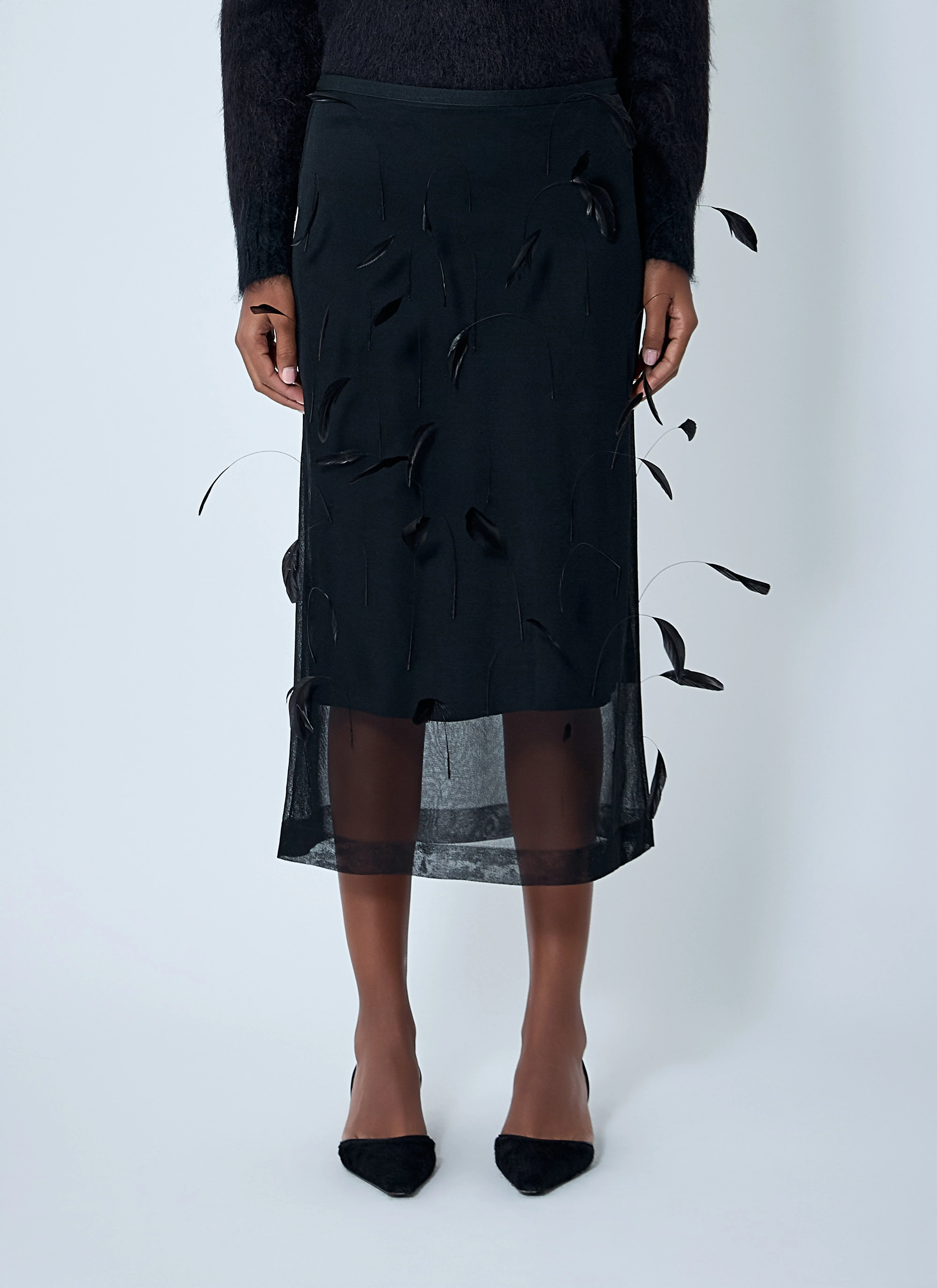 Midi skirt with sheer overlay and feather detailing. Elasticated waistband Feather embellishments Sheer hem panel 100% Silk. Dry clean J03MA0263 J16141 001 SKU: J03MA0263J16141001 Our Products Are 100% Genuine. In All Cases We Stand By The Authenticity Of Every Product Sold On Our Site. All sales are final and we only accept returns for quality issue. Buyer is responsible for any import tax/duty if applicable.