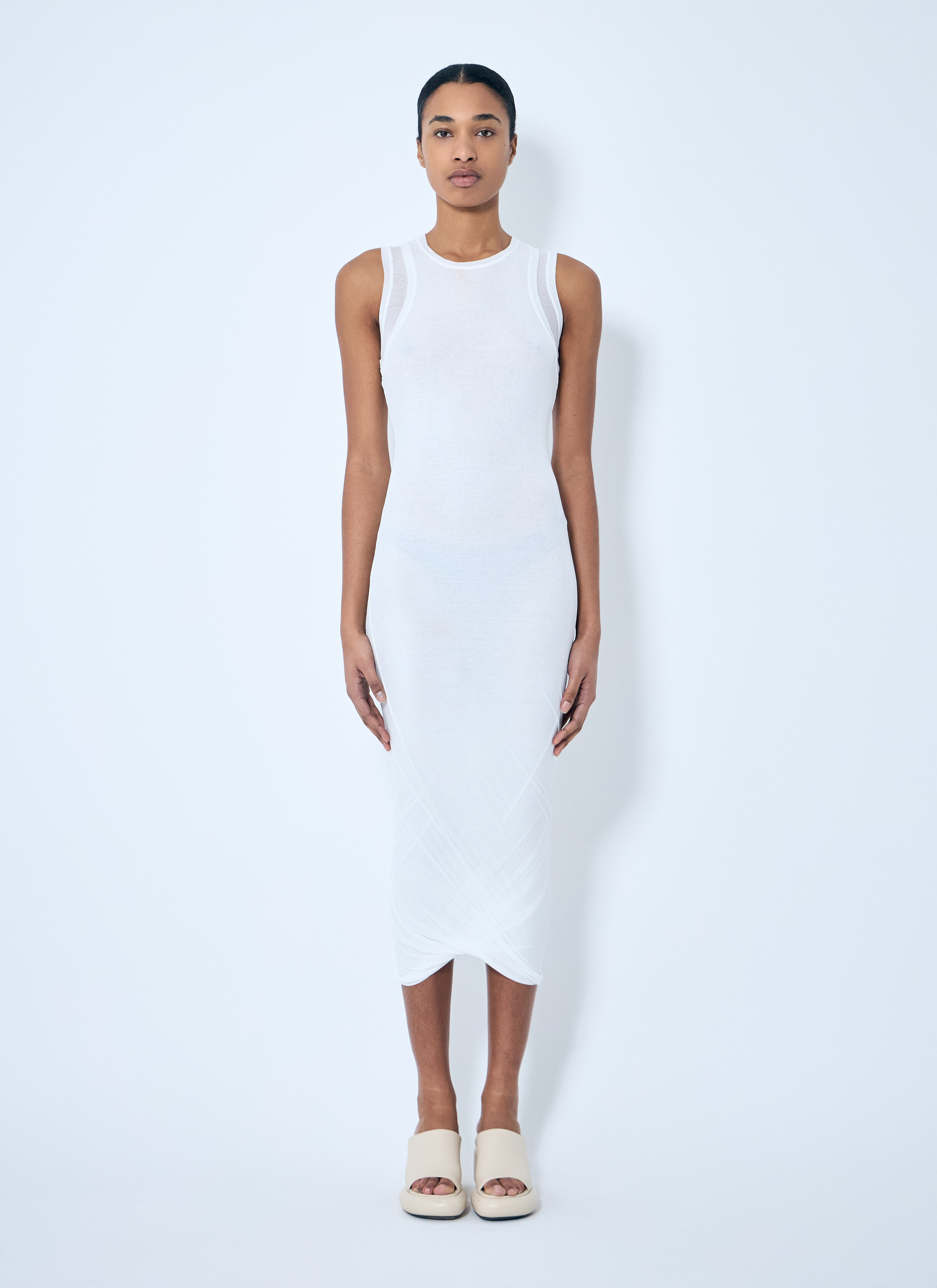White Sleeveless Twisted Midi Dress