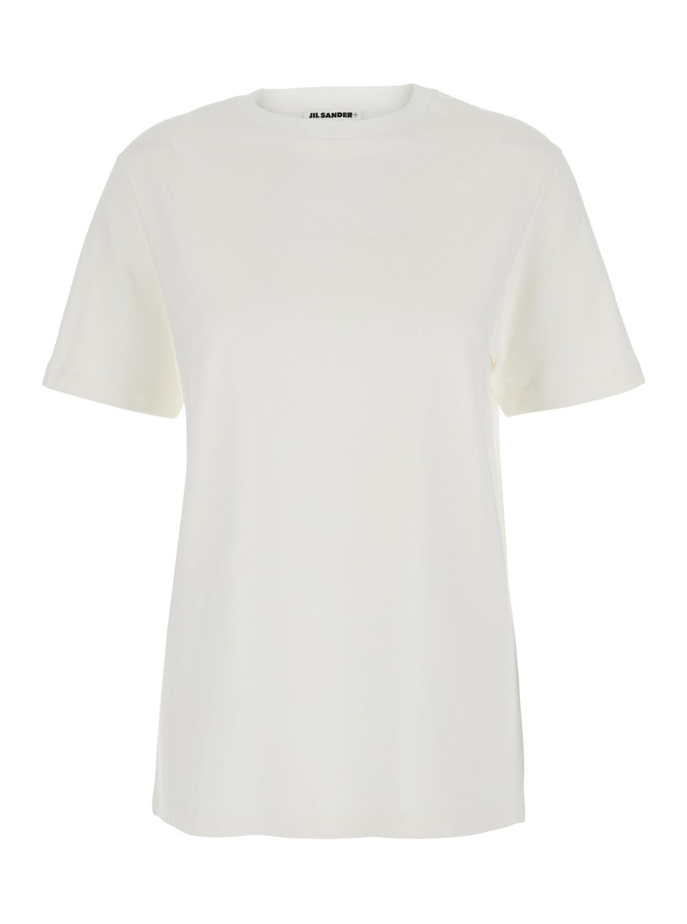 Jil Sander Women White Crewneck T-Shirt With Logo Patch Applied On The Back In Cotton Woman