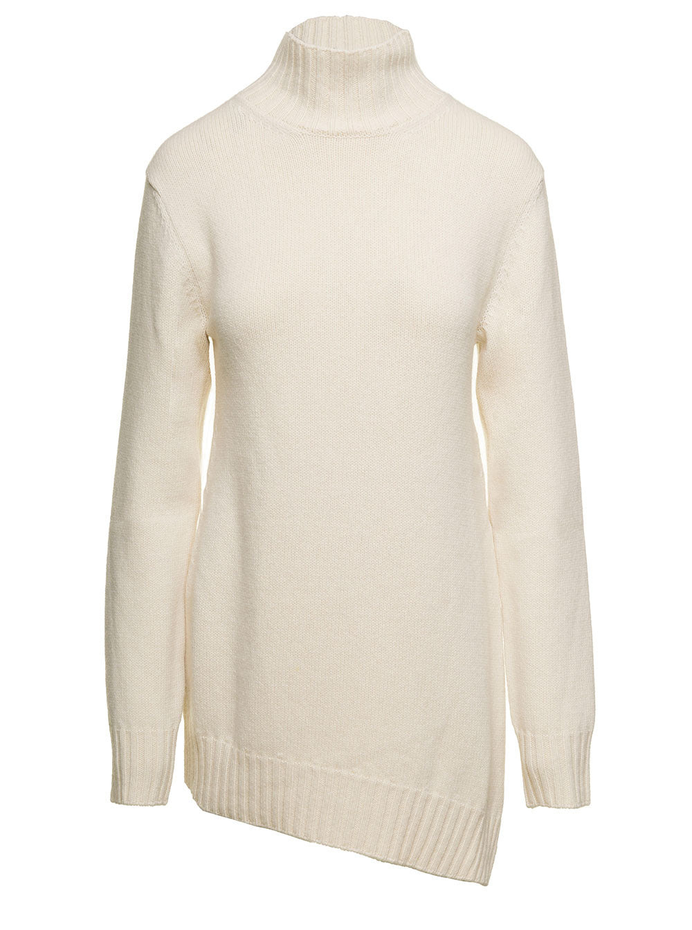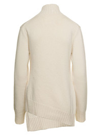 Jil Sander Women White Mock Neck Jumper With Asymmetric Hem In Wool Woman