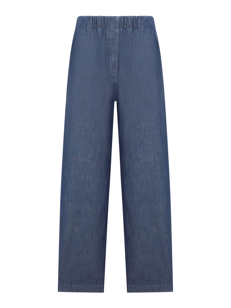 Jil Sander Women Wide Leg Trousers In Lightweight Cotton Chambray