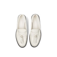 Addie/Pearl Latte Patent Leather Flat Loafers with Pearl Tassel