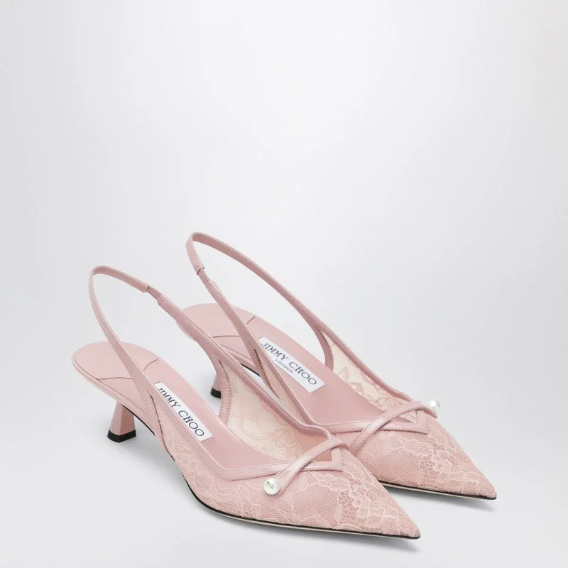 Jimmy Choo Amita 45 Slingback Pumps In Pink Leather And Lace Women