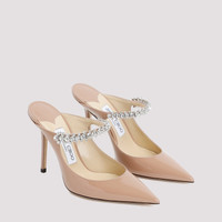 Bing 100 Ballet Pink Patent Leather Mules with Crystal Strap