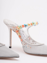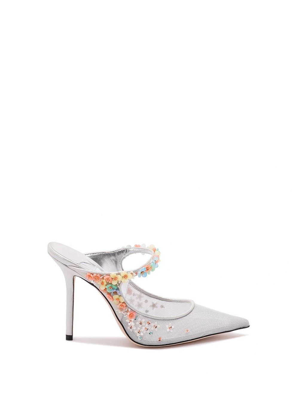 Bing Daisy 100 Silver Metallic Mesh Mule with Floral Embellishments
