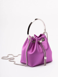 Bon Bon Violet Orchid Satin Handbag with Metal Bracelet