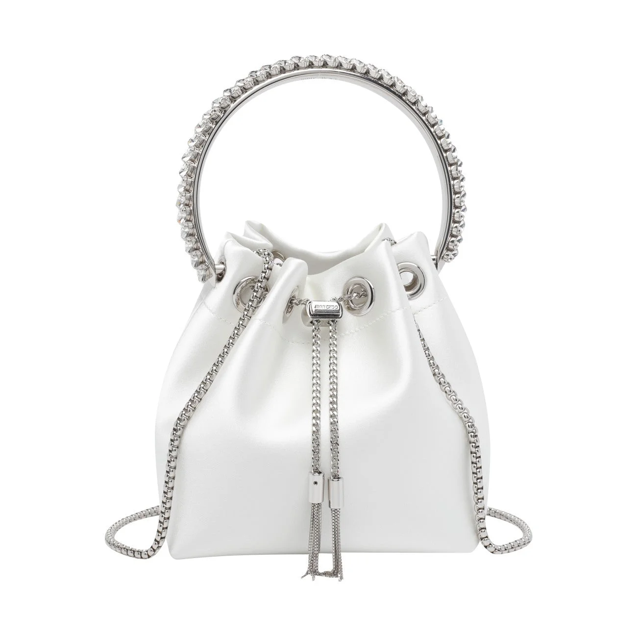 Bon Bon Ivory Satin Bag with Crystal Handle