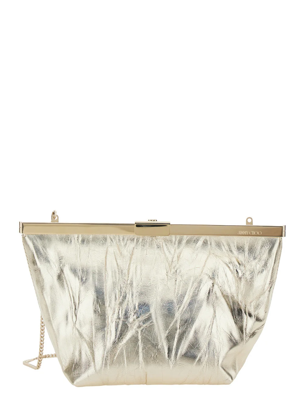 Jimmy Choo Women 'Ganache' Metallic Clutch With Chain-Link Shoulder Strap And Clasp Closure In Leath