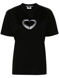 black cotton jersey texture crew neck graphic-heart print to the front short sleeves straight hem Size Type: INT SKU: JMT0130511 Our Products Are 100% Genuine. In All Cases We Stand By The Authenticity Of Every Product Sold On Our Site. All sales are final and we only accept returns for quality issue. Buyer is responsible for any import tax/duty if applicable.
