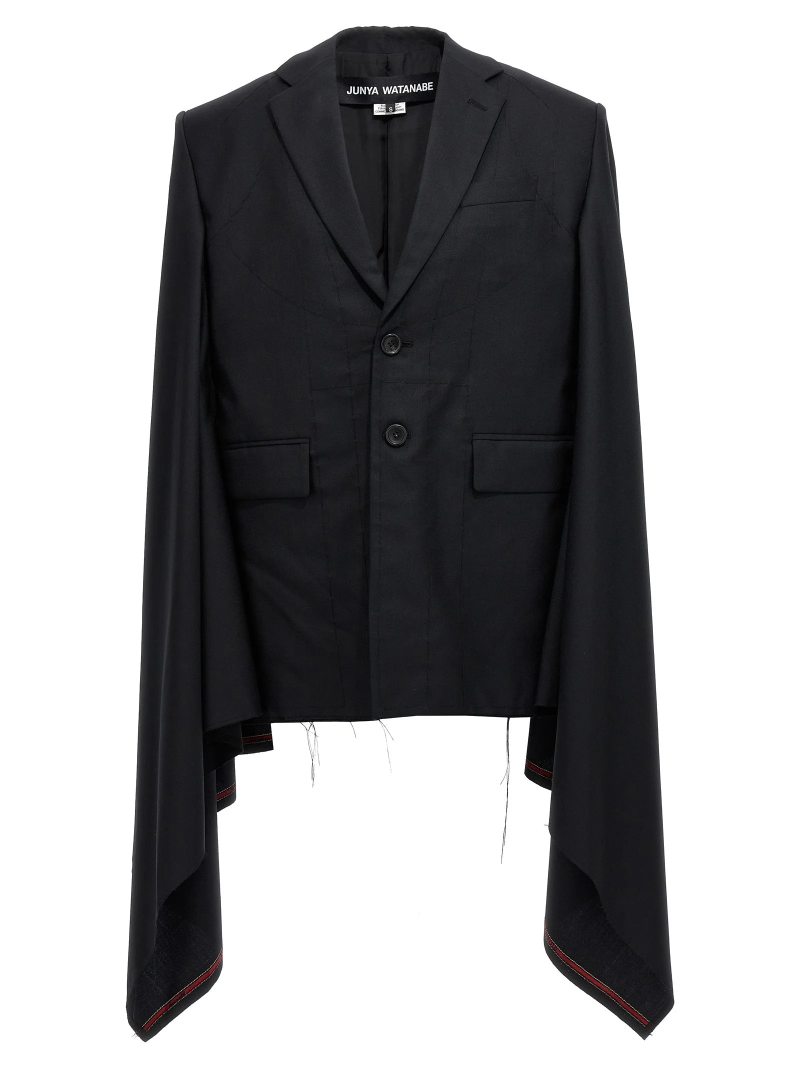 Wool cape with seized detail on the bottom hem, a button closure, pockets, padded shoulders, and wide sleeves. oversize fit 100% wool SKU: JKJ0030511 Our Products Are 100% Genuine. In All Cases We Stand By The Authenticity Of Every Product Sold On Our Site. All sales are final and we only accept returns for quality issue. Buyer is responsible for any import tax/duty if applicable.