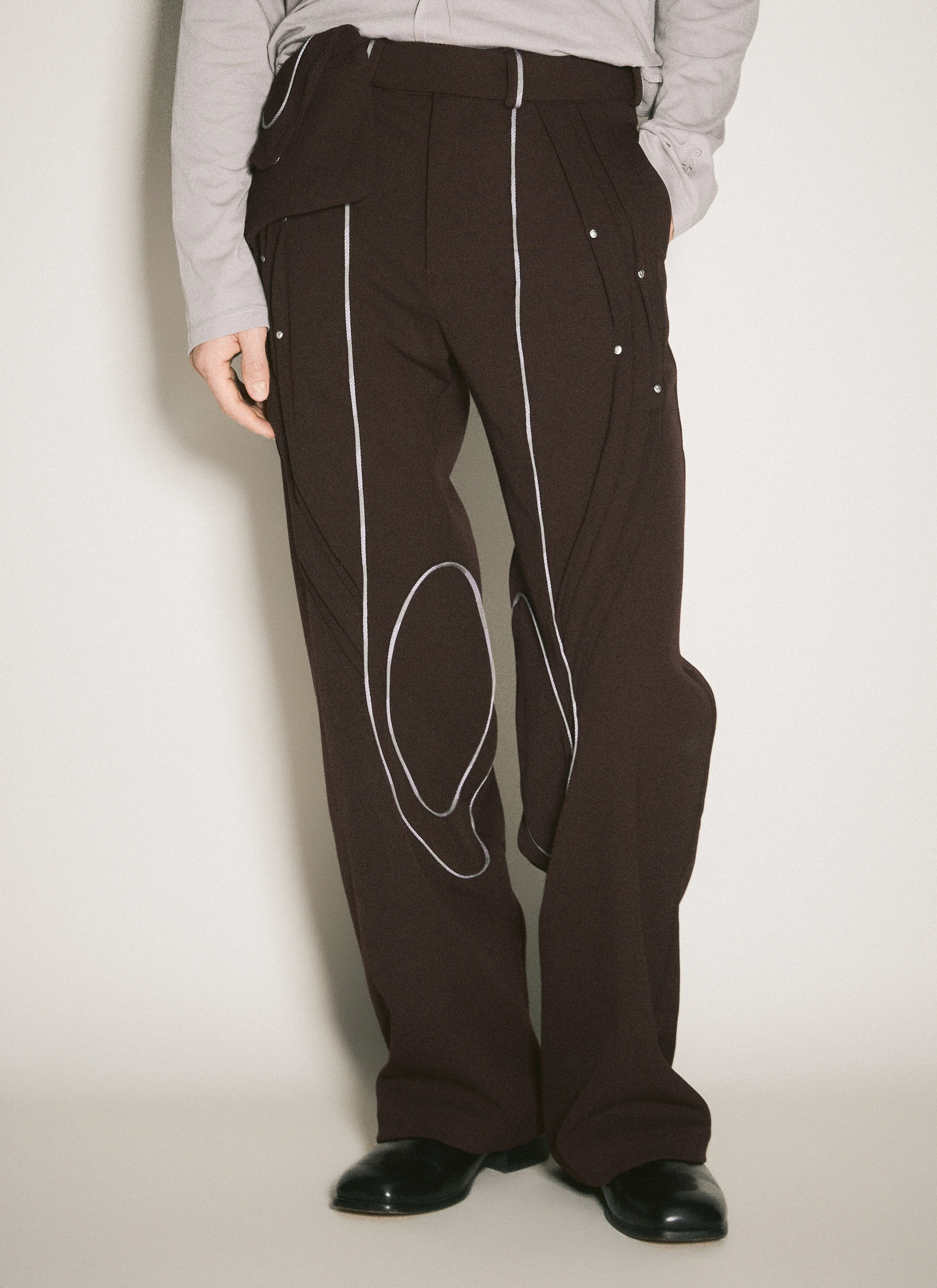 Chalice pants in twill weave with contrast piping. Mid rise Top-button and zip-fly fastening Detachable belt Stud embellishment Side slip pockets Rear patch pockets 54% Polyester, 45% Wool, 1% Elastane. Dry clean KKAW24T03-13 SKU: KKAW24T0313 Our Products Are 100% Genuine. In All Cases We Stand By The Authenticity Of Every Product Sold On Our Site. All sales are final and we only accept returns for quality issue. Buyer is responsible for any import tax/duty if applicable.