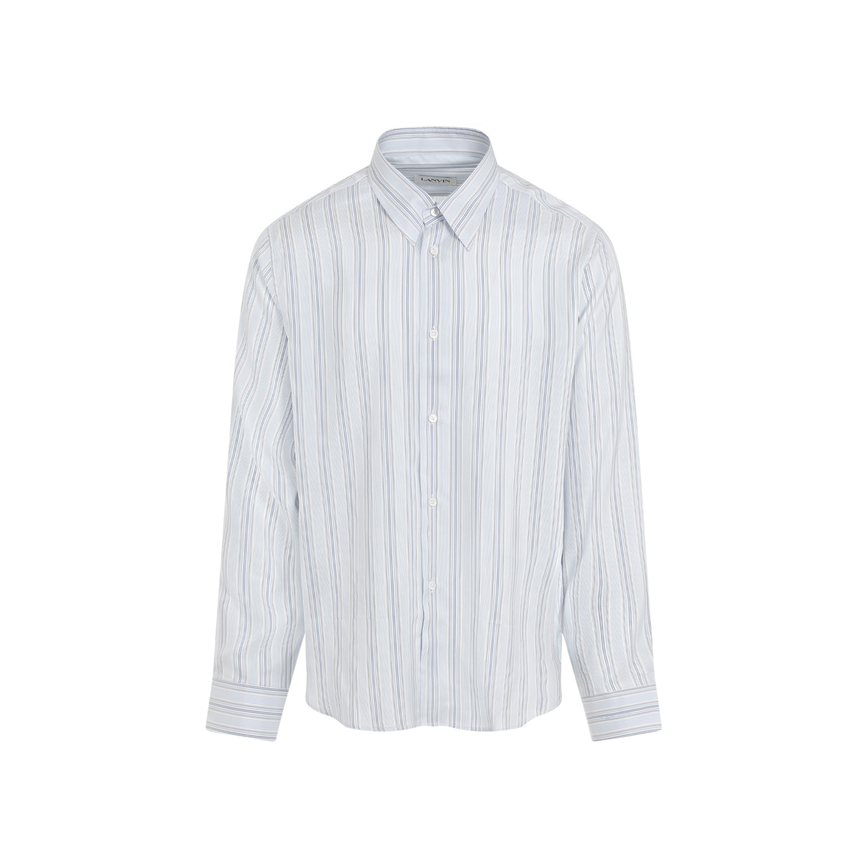 Lanvin Fitted Light Blue Silk Shirt. Crafted from light blue silk, striped pattern all over, pointed collar, front button closure, buttoned cuffs, back yoke, rounded hem. Silk | 100%SILK Size Type: CM SKU: RMSI00184534H24Blue Our Products Are 100% Genuine. In All Cases We Stand By The Authenticity Of Every Product Sold On Our Site. All sales are final and we only accept returns for quality issue. Buyer is responsible for any import tax/duty if applicable.
