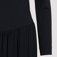 ASYMETRIC TOP LONG SLEEVE DRAPED MIDI DRESS IN FLUID CREPE