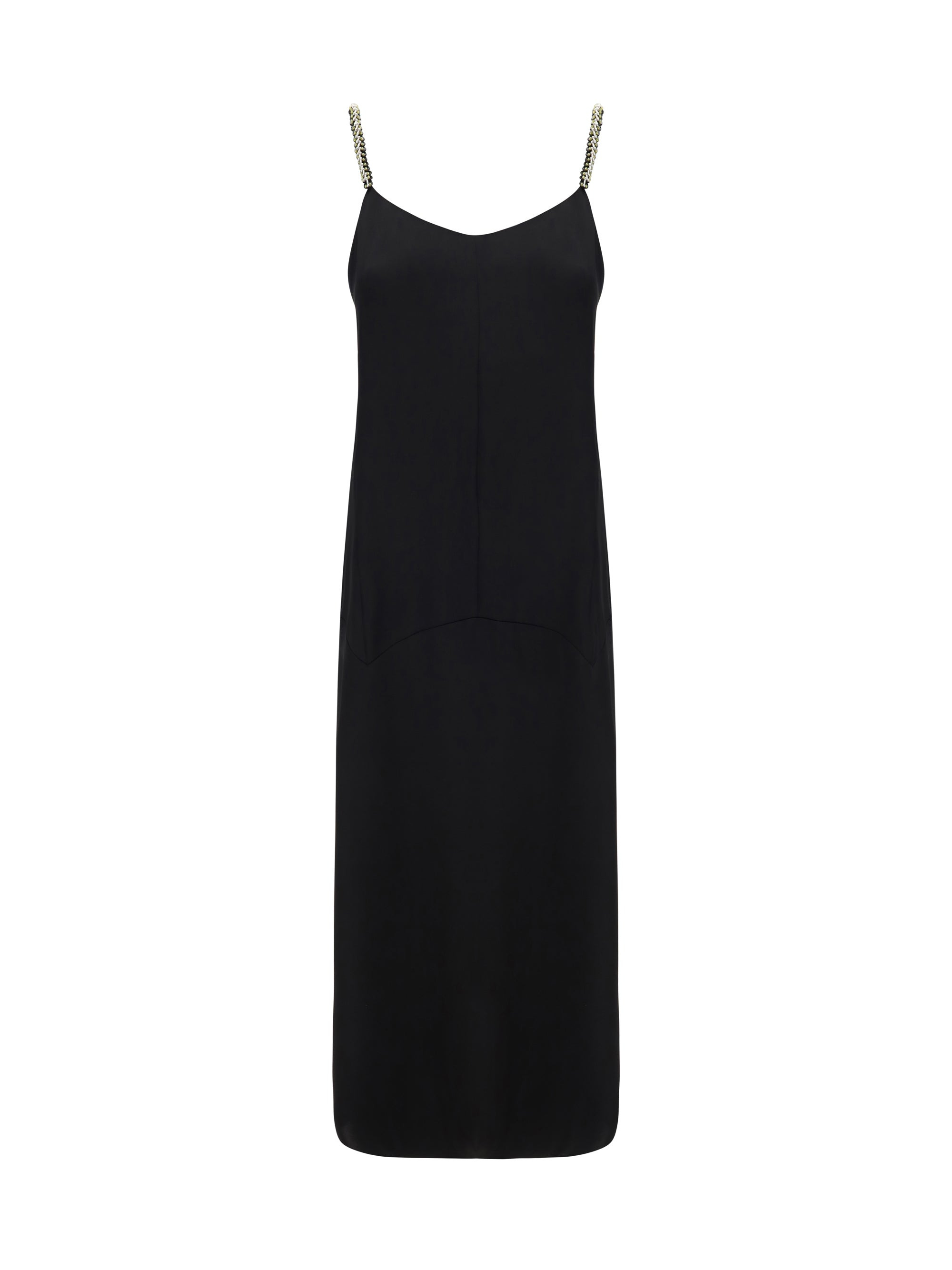 Summer Dress by Lanvin, thin straps woven through gold-plated chains, foot-length design, soft front neckline, concealed zipper closure on side panel. Size Type: FR SKU: RWDR90025882P2410 Our Products Are 100% Genuine. In All Cases We Stand By The Authenticity Of Every Product Sold On Our Site. All sales are final and we only accept returns for quality issue. Buyer is responsible for any import tax/duty if applicable.