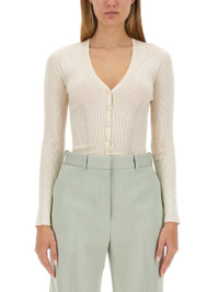 ribbed V-neck cardigan