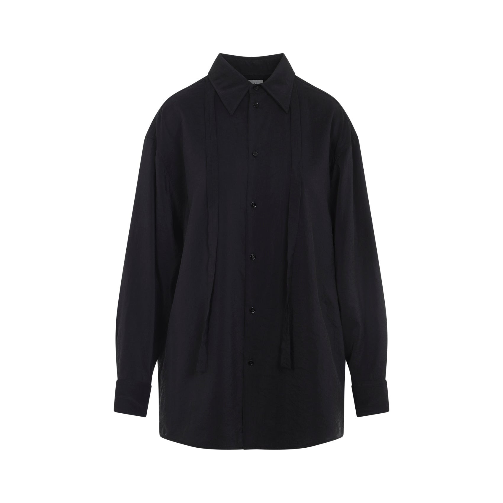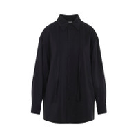 Lemaire Black Silk Long Shirt With Tie. Crafted in silk and polyamide blend. Pointed collar, front buttoned fastening, long sleeves, dropped shoulders, buttoned cuffs, straight hem. Silk | 76%SILK 24%POLYAMIDE Size Type: IT SKU: SH1051LF1308Black Our Products Are 100% Genuine. In All Cases We Stand By The Authenticity Of Every Product Sold On Our Site. All sales are final and we only accept returns for quality issue. Buyer is responsible for any import tax/duty if applicable.