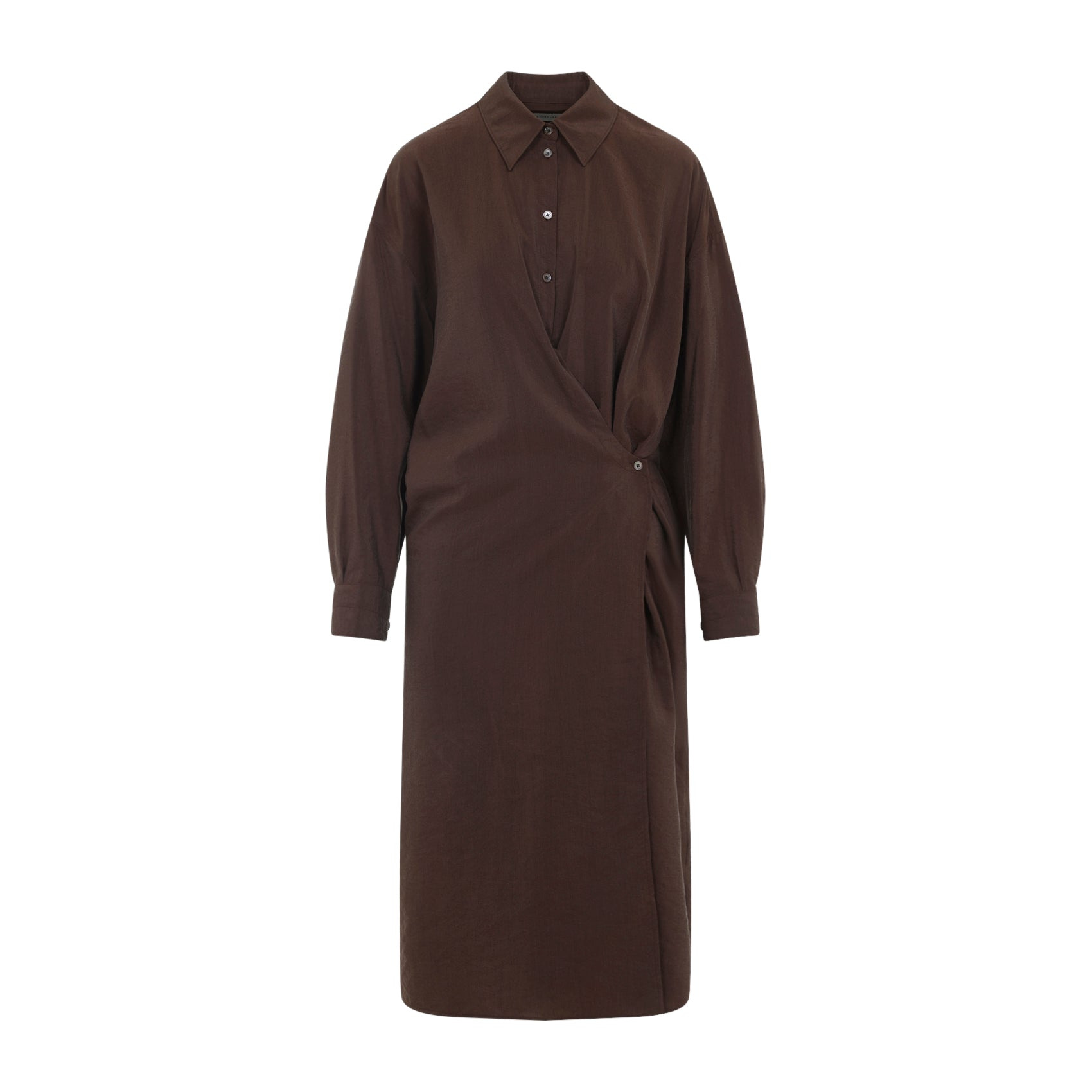 Lemaire Brunette Brown Silk Straight Collar Twisted Dress. Crafted in silk and polyamide, pointed collar, front buttoned fastening, side buttoned detail, front draped effect, long sleeves, buttoned cuffs, midi-length, straight hem. Silk | 76%SILK 24%POLYAMIDE Size Type: FR SKU: DR1092LF1308Brown Our Products Are 100% Genuine. In All Cases We Stand By The Authenticity Of Every Product Sold On Our Site. All sales are final and we only accept returns for quality issue. Buyer is responsible for any import tax/duty if applicable.