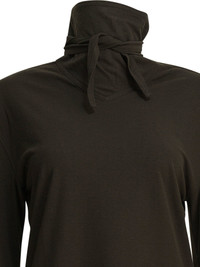 Lemaire scarf-neck blouse made of crepe jersey with a soft, lightly textured surface. The structure includes an integrated scarf collar, which can be knotted or left soft. The silhouette is linear, with a straight cut and long sleeves. Seams are inside and regular for a clean finish. The fabric maintains a smooth fall and follows the natural shape of the body. || - Solid color - Scarf collar - Long sleeves - Soft, lightly textured crepe jersey - Regular fit 100% cotton SKU: TO1306LJ1025BR507 Our Products Are 100% Genuine. In All Cases We Stand By The Authenticity Of Every Product Sold On Our Site. All sales are final and we only accept returns for quality issue. Buyer is responsible for any import tax/duty if applicable.