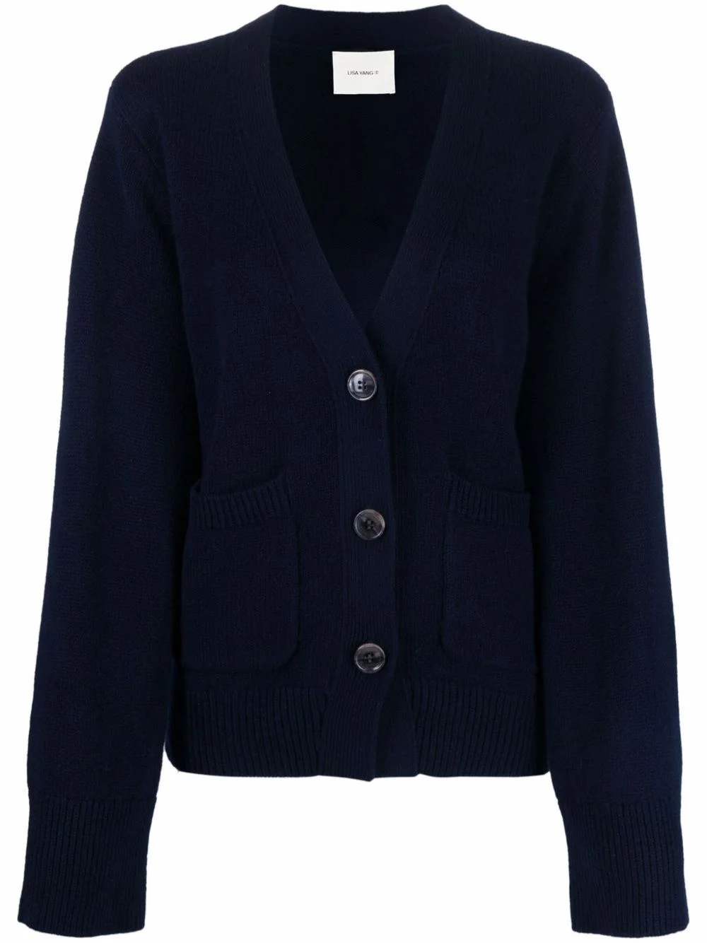 navy blue cashmere knitted construction two front patch pockets V-neck front button fastening long sleeves ribbed cuffs ribbed hem Size Type: NUM SKU: 202084NA Our Products Are 100% Genuine. In All Cases We Stand By The Authenticity Of Every Product Sold On Our Site. All sales are final and we only accept returns for quality issue. Buyer is responsible for any import tax/duty if applicable.