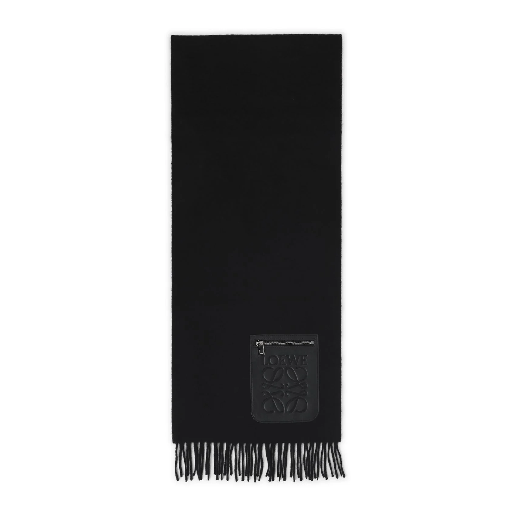 Loewe 28X180 Black Wool and Cashmere Scarf. Scarf crafted from pure black wool and cashmere, it features a leather patch pocket with engraved Loewe Anagram and zip fastening, and fringed hems. Wool | 90%WOOL 10%CASHMERE 28cm X 180cm Size Type: One Size SKU: FSA5SS1W01Black Our Products Are 100% Genuine. In All Cases We Stand By The Authenticity Of Every Product Sold On Our Site. All sales are final and we only accept returns for quality issue. Buyer is responsible for any import tax/duty if applicable.