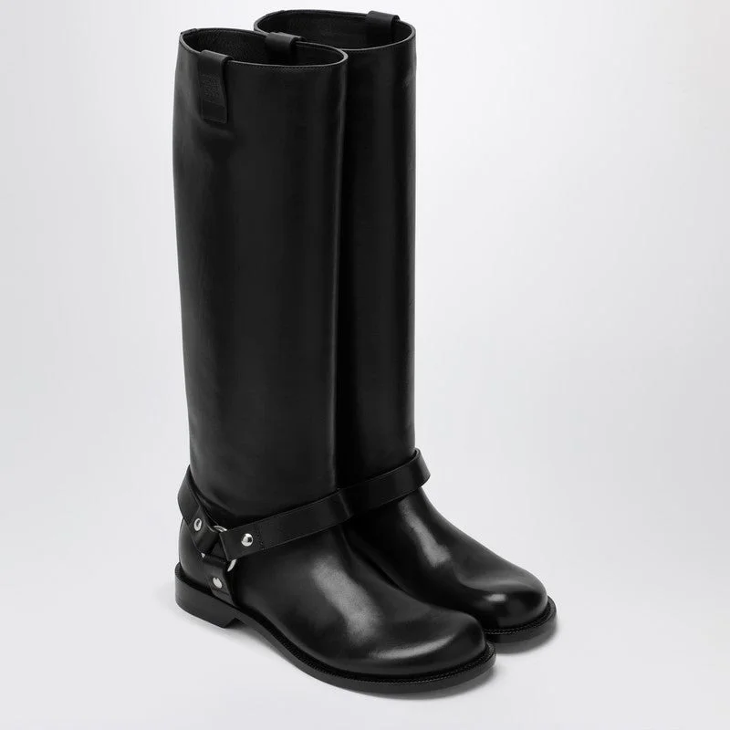 Loewe Campo Biker High Boot In Black Calfskin Leather Women