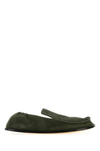 Loewe Men Olive Green Suede Flex Loafers