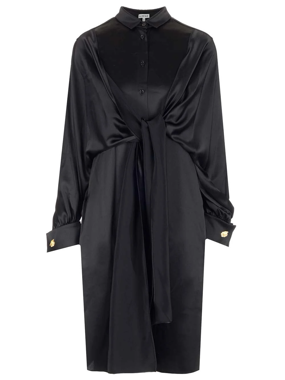 Knot midi dress from Loewe in black crepe satin with puffed sleeves Exterior: 24.0% POLIESTER-POLYESTER 76.0% TRIACETATO-TRIACETATE Made in: PT SKU: S540Y09XH21100 Our Products Are 100% Genuine. In All Cases We Stand By The Authenticity Of Every Product Sold On Our Site. All sales are final and we only accept returns for quality issue. Buyer is responsible for any import tax/duty if applicable.