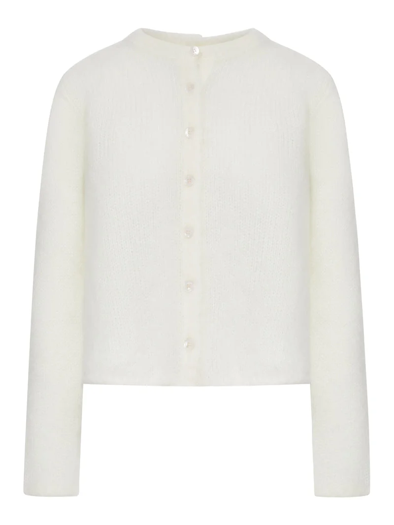 - Mohair blend cardigan - Medium weight - A-line silhouette - Front and back button closure - Crew neck - Anagram embroidery on the chest - Regular fit - Cropped length Made in Italy Composition: Mohair 64.35% Mohair 28.71 % polyamide 4.95% wool 1% polyester 0.99% elastane Color code: 2100 WHITE Size Type: STANDARD SKU: S540Y16K88 Our Products Are 100% Genuine. In All Cases We Stand By The Authenticity Of Every Product Sold On Our Site. All sales are final and we only accept returns for quality issue. Buyer is responsible for any import tax/duty if applicable.
