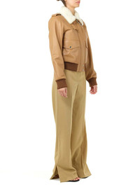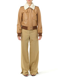 Toffee brown nappa aviator jacket from Loewe with classic shearling fur collar, patch pockets, concealed zip closure, ribbed hems. Exterior: 0.64% POLIAMIDA-POLYAMIDE 96.0% CORDERO-LAMBSKIN 0.12% ELASTANO-ELASTANE 3.24% ALGODON-COTTONInterior: 47.5% POLIESTER-POLYESTER 2.5% POLIAMIDA-POLYAMIDE 50.0% VISCOSA-VISCOSE Made in: ES SKU: S359Y19L433288 Our Products Are 100% Genuine. In All Cases We Stand By The Authenticity Of Every Product Sold On Our Site. All sales are final and we only accept returns for quality issue. Buyer is responsible for any import tax/duty if applicable.