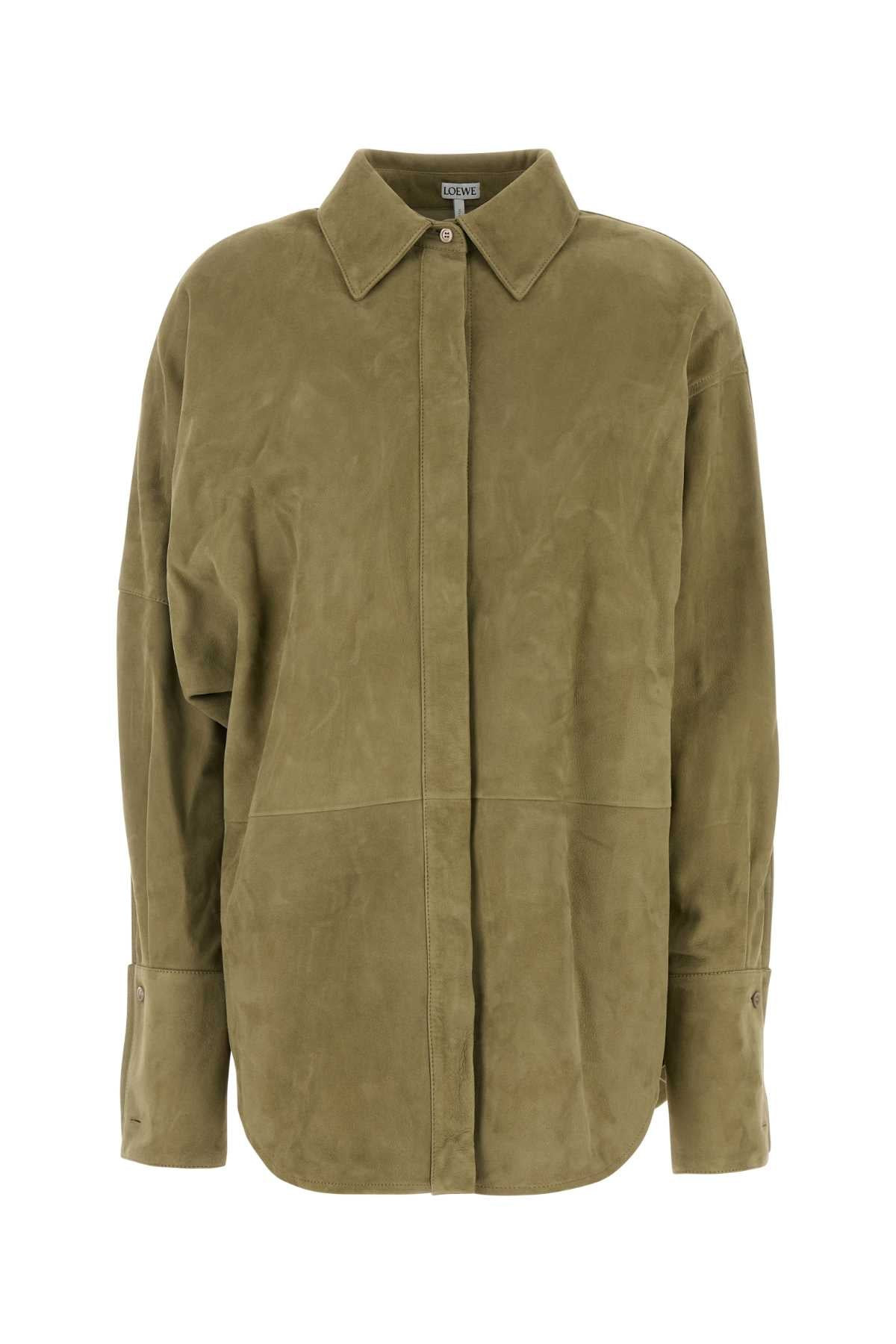 Loewe Women Sage Green Suede Shirt