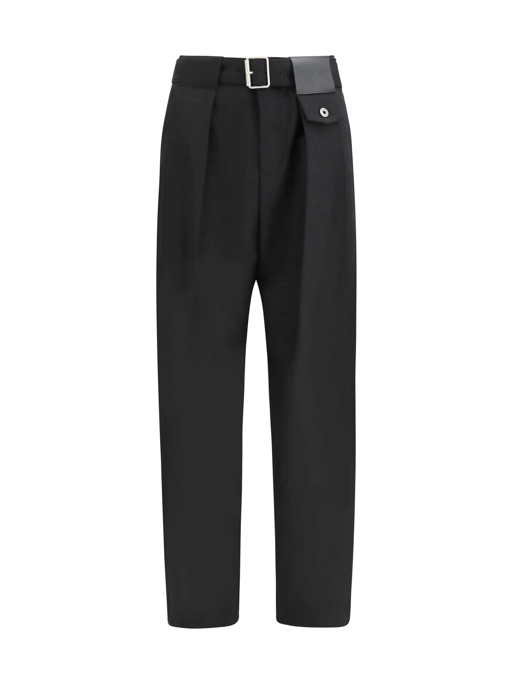 The casual Trousers by Loewe blend tailored elegance with contemporary comfort. Crafted from lightweight tailored wool crepe, they feature a fabric adjustable belt and front pleats that define a relaxed yet refined silhouette. Designed with a mid-rise waist, wide leg and standard length, they are finished with a concealed button fastening for a clean look. Details include a buttoned coin pocket, in-seam pockets, a back patch pocket, and a leather patch with embossed LOEWE lettering at the front, adding a signature touch. Size Type: FR SKU: S359Y04XIG1100 Our Products Are 100% Genuine. In All Cases We Stand By The Authenticity Of Every Product Sold On Our Site. All sales are final and we only accept returns for quality issue. Buyer is responsible for any import tax/duty if applicable.