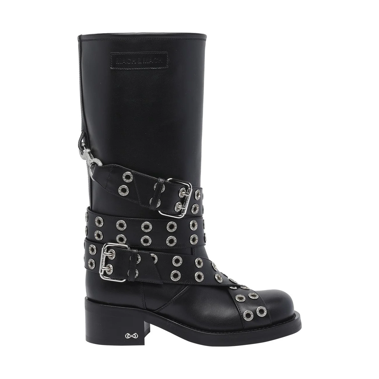 Mach & Mach Women Buckle Belt Vintage Leather Combat Boots