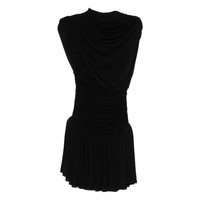 black draped neckline pleated skirt short sleeves gathered waist MADE IN:PolandMATERIAL:Cupro: 92.0%, Elastane: 8.0%COLOR:BLACK SKU: SUKIENKA20BLACK Our Products Are 100% Genuine. In All Cases We Stand By The Authenticity Of Every Product Sold On Our Site. All sales are final and we only accept returns for quality issue. Buyer is responsible for any import tax/duty if applicable.