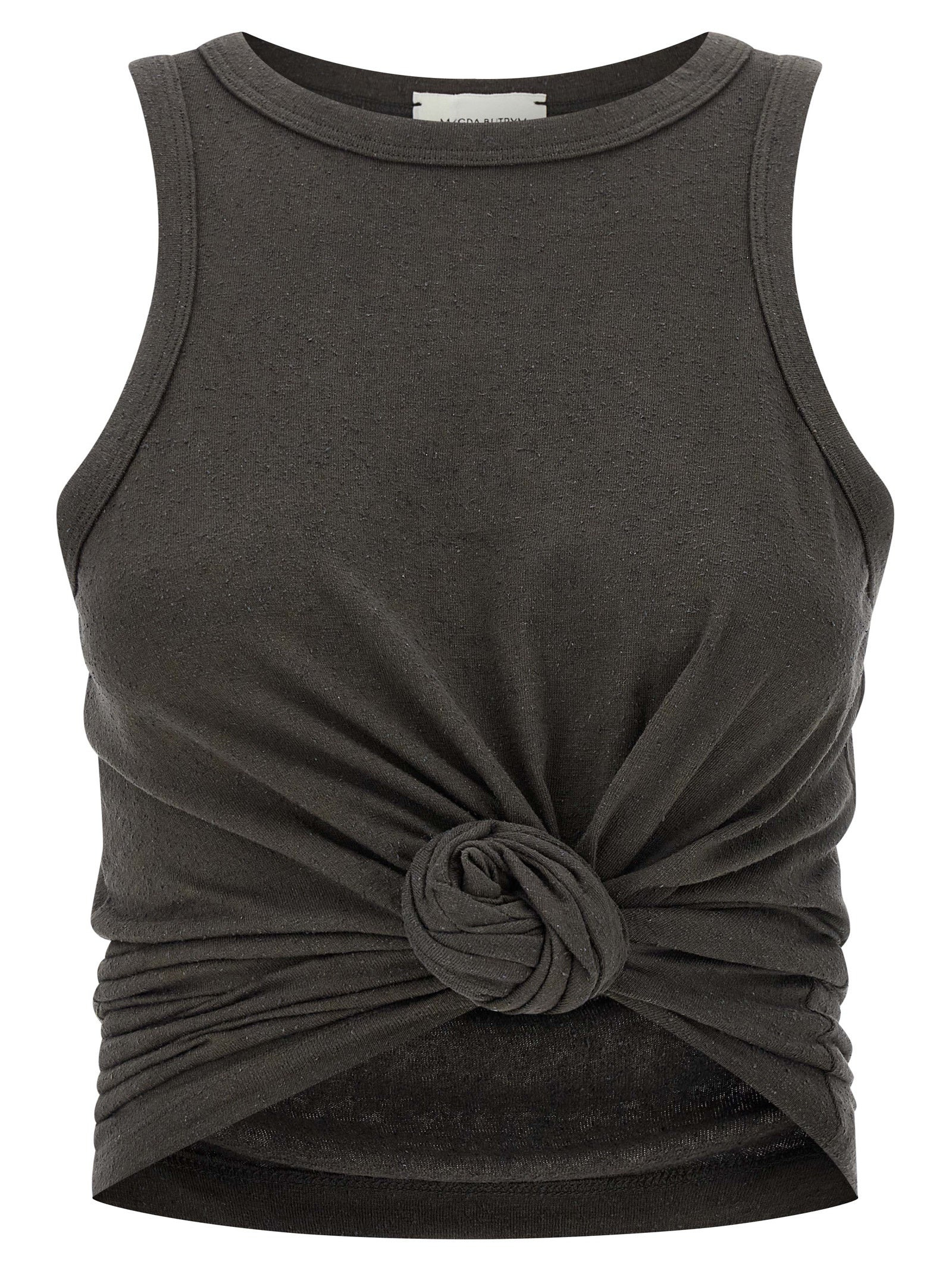 '02' cotton and silk tank top with raw texture, round neckline, front knot detail. true to size fit - FRENCH size 75% cotton, 25% silk SKU: 254725GREY Our Products Are 100% Genuine. In All Cases We Stand By The Authenticity Of Every Product Sold On Our Site. All sales are final and we only accept returns for quality issue. Buyer is responsible for any import tax/duty if applicable.