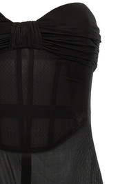 Strapless gathered jersey midi dress Black