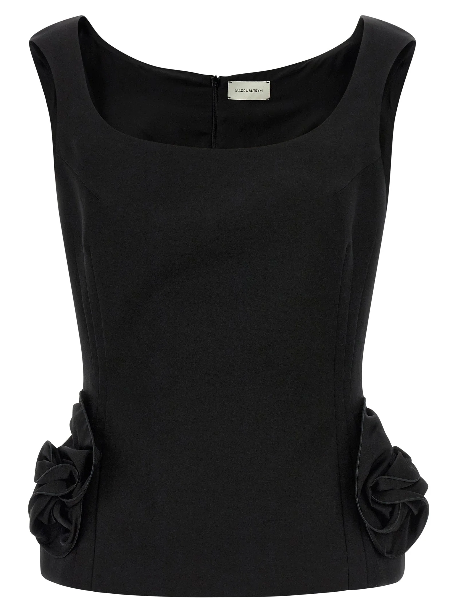 'Blouse 11' silk blend top with round neckline, structured style with front stitching and padding on the sides, floral ruffle detail, back zip closure, sleeveless. True to size fit French sizing 51% cotton, 49% silk SKU: 353426BLACK Our Products Are 100% Genuine. In All Cases We Stand By The Authenticity Of Every Product Sold On Our Site. All sales are final and we only accept returns for quality issue. Buyer is responsible for any import tax/duty if applicable.