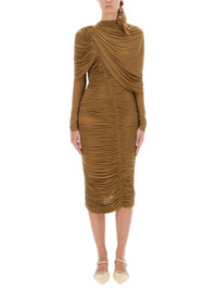 Draped high-neck midi dress in beige