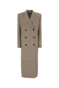 Magda Butrym Women Melange Cappuccino Silk Blend Coat