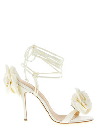 Double flower heel sandals in ivory