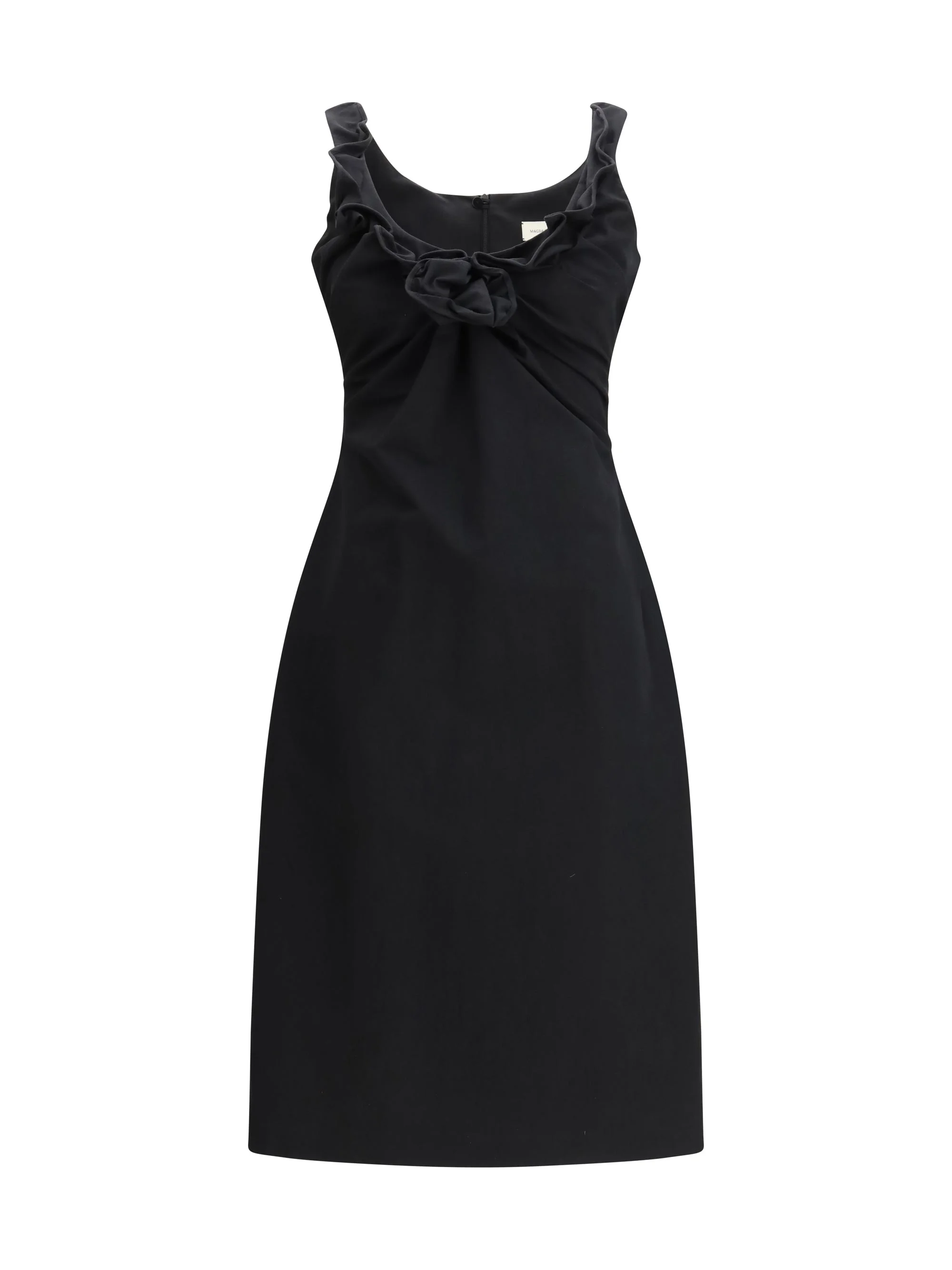 Sleeveless dress with draped neckline in black