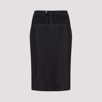 Maison Margiela Black Acetate Midi Skirt. Pencil skirt crafted from black tech fabric, featuring a high waist, semi-sheer panel with raw-cut edges, a back button and zip fastening, iconic four stitches at the back, and a back slit. Acetate | 60%ACETATE 40%CUPRO Size Type: IT SKU: S51ME0048MTN141Black Our Products Are 100% Genuine. In All Cases We Stand By The Authenticity Of Every Product Sold On Our Site. All sales are final and we only accept returns for quality issue. Buyer is responsible for any import tax/duty if applicable.