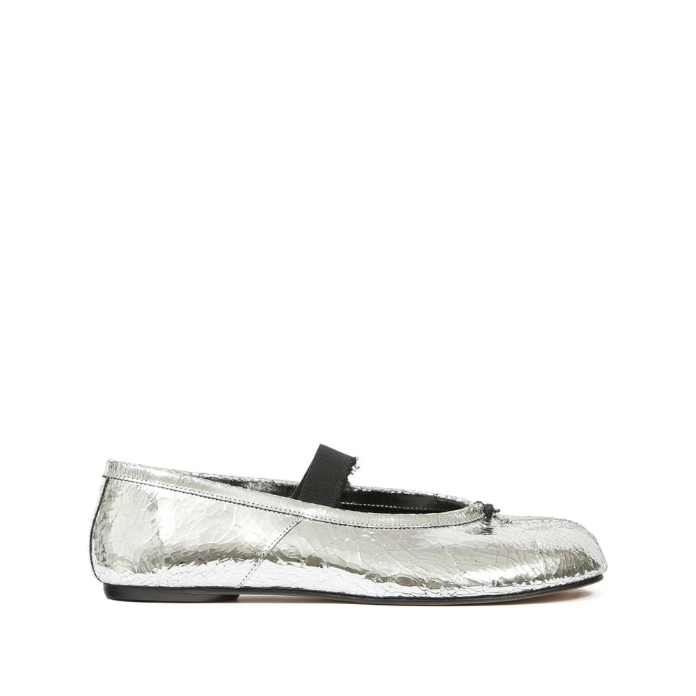 Tabi split-toe metallic cracked-leather ballet flats Silver